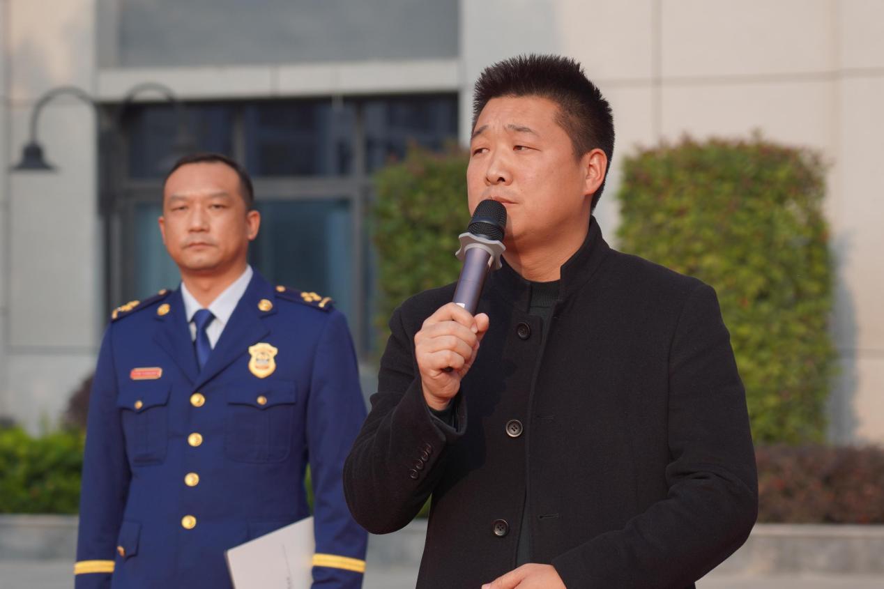 裴刚大队长讲解日常生活中的灭火技巧及火灾报警、逃生方法及消防知识,希望学生们认真对待演习活动,积极学习消防知识,掌握自救互救能力。