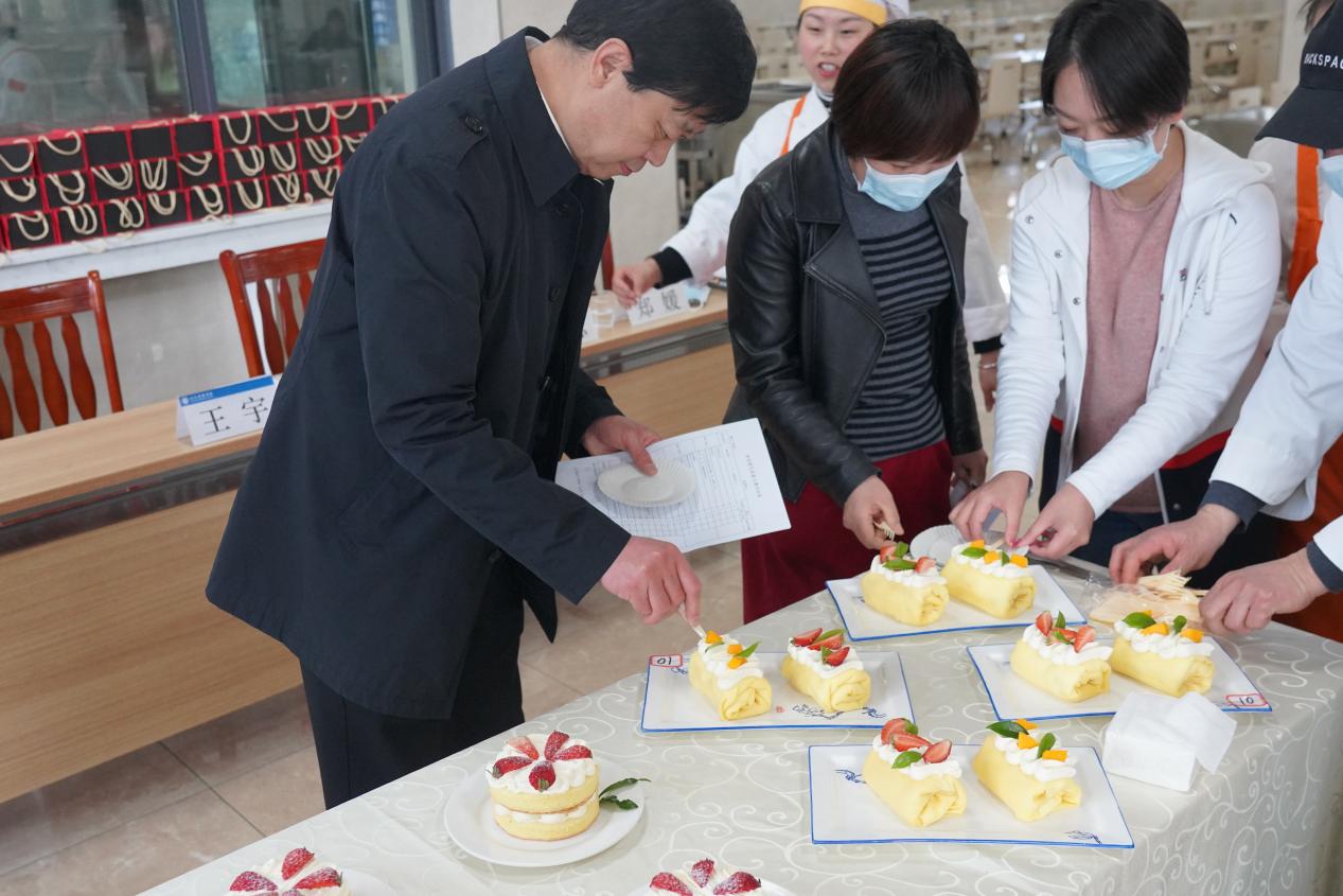 本次比赛依据各岗位特点,分别设有定项和选项两个环节,由中式烹调岗、西式烘焙岗、中式面点岗、切配岗、保洁服务岗等食堂员工现场在规定时间内完成比赛项目。比赛严格遵循现场制作、现场检验、现场评分的原则,由校领导、老师代表及学生代表进行公平、公正、公开的评选。选手们穿好工作服,戴好工作帽,个个精神饱满、跃跃欲试。比赛过程中,选手们各展身手,亮出自己的绝活;评委用心品评,公正判决,比赛氛围热烈而有序。