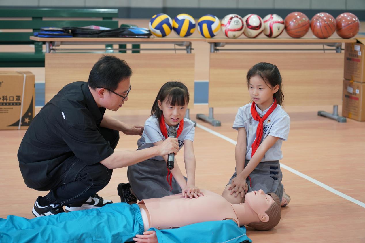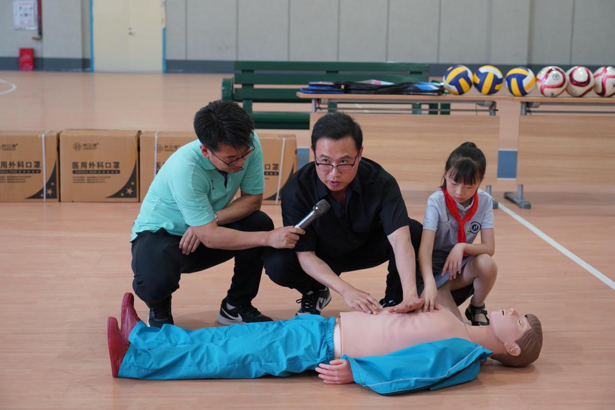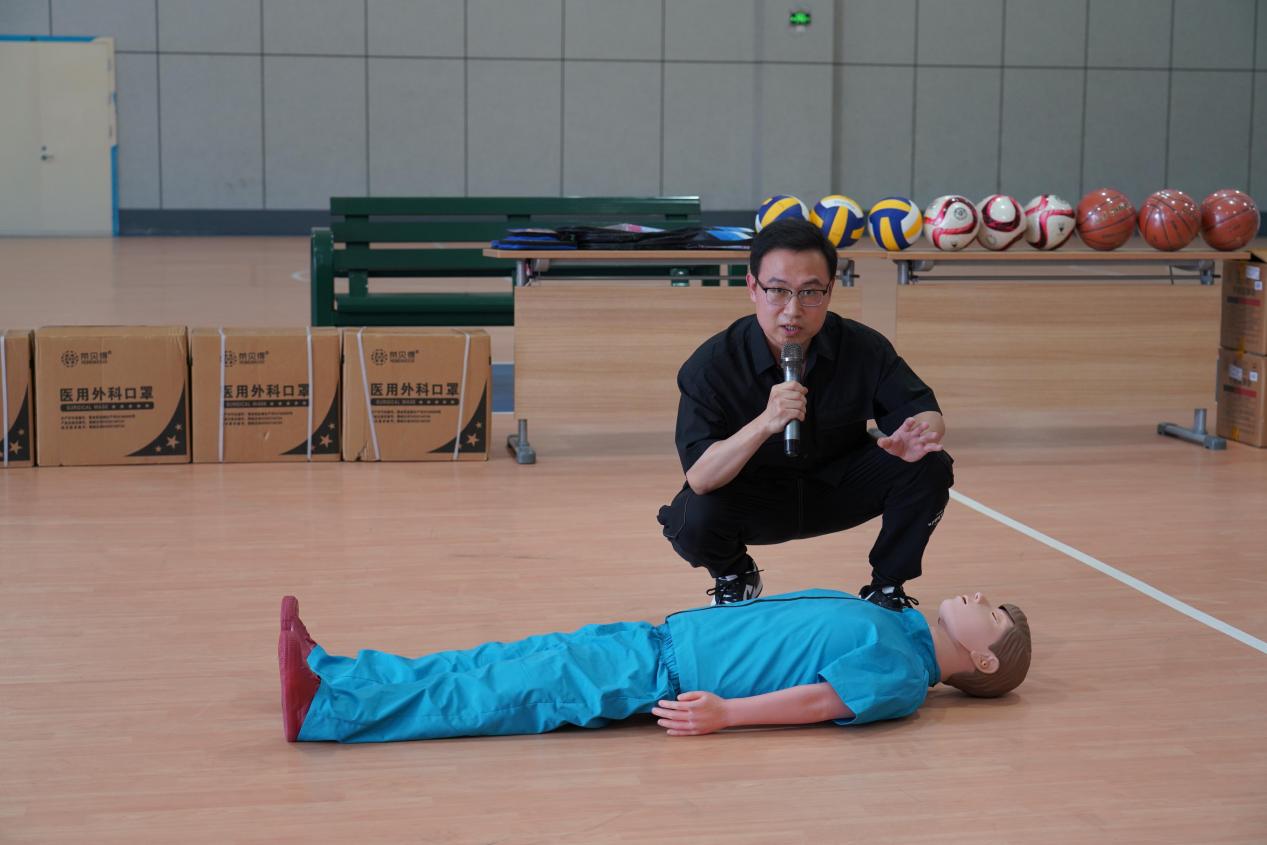 十堰市妇幼保健院急诊科医生吴曦为学生们作溺水急救知识主题培训,详细介绍了溺水急救的相关知识,通过讲述案例及亲身经历警示学生,提高学生防溺水安全意识。吴医生用通俗易懂的语言为学生详细讲解了心肺复苏技术的操作要点和注意事项,现场演示了如何抢救溺水者及正确进行心肺复苏操作,并让学生通过人体模型现场实操,让师生们直观、形象地掌握自救和互救的方法。