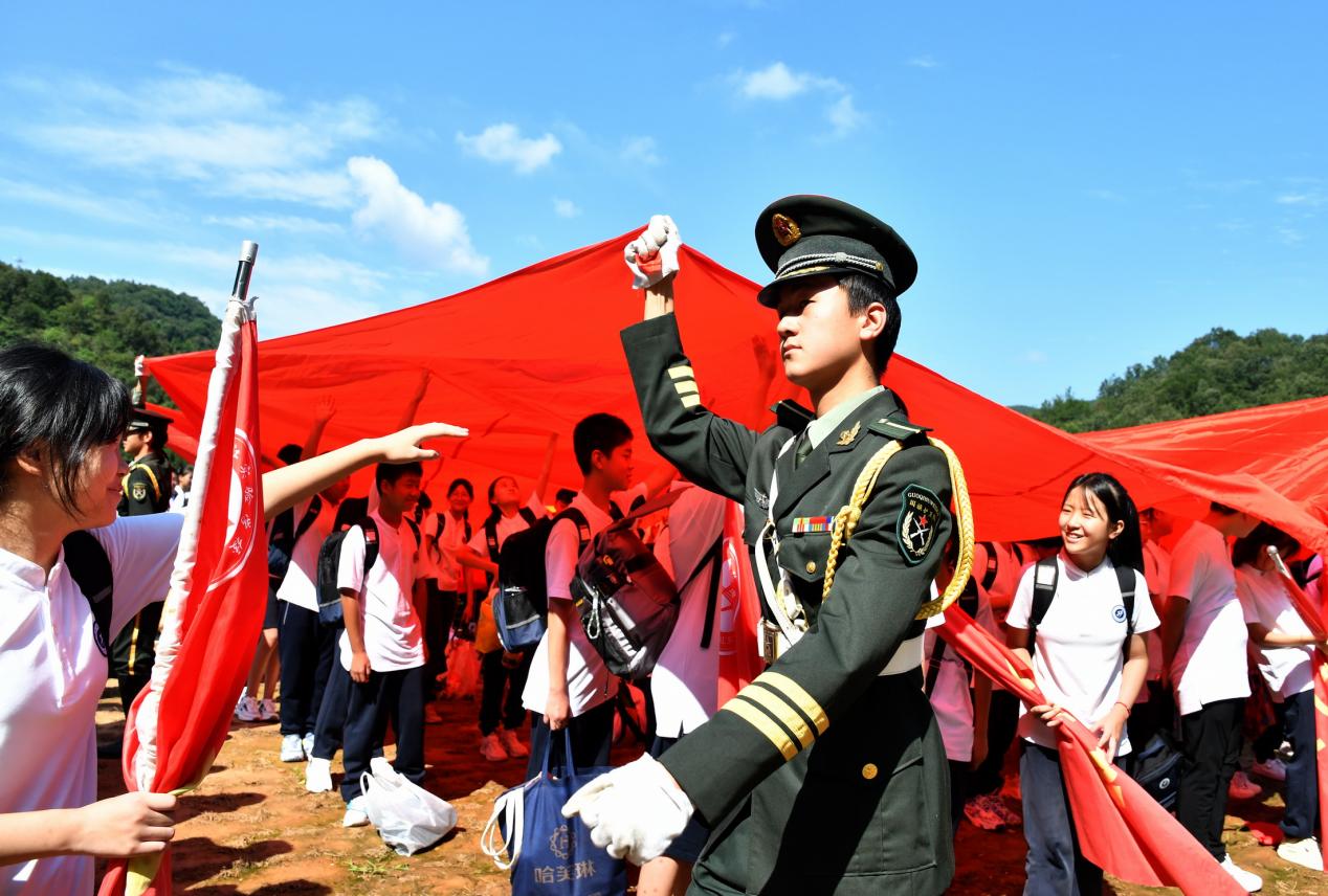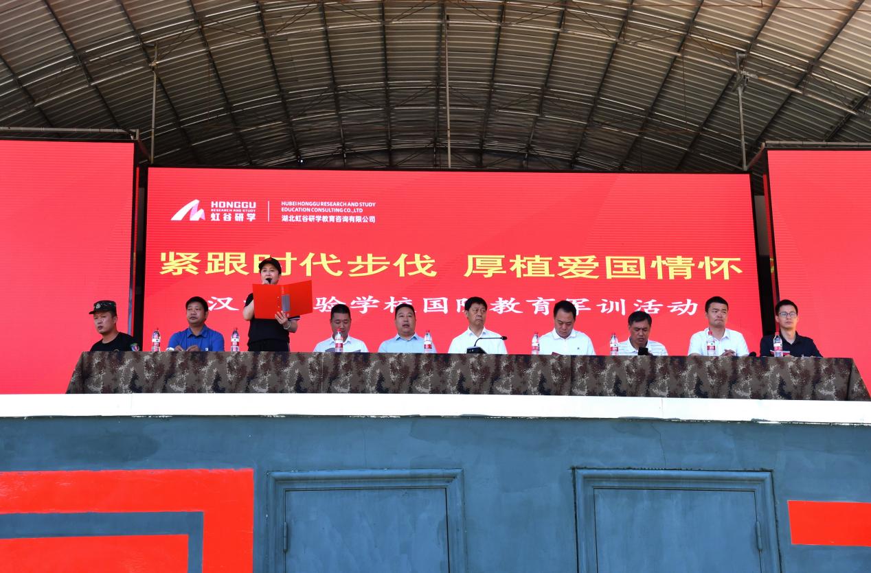 为培养学生的爱国情怀,树立远大的理想,养成良好的行为习惯,8月29日,汉江实验学校七年级国防教育“紧跟时代步伐 厚植爱国情怀”主题军训活动在武当山虹谷国际研学营地启动。汉江实验学校董事长陈伟,总校长朱仕竹,总校执行校长王国聪,总校副校长、学生发展研究院主任陈磊,武当山虹谷国际研学营地副校长陈超等出席仪式。