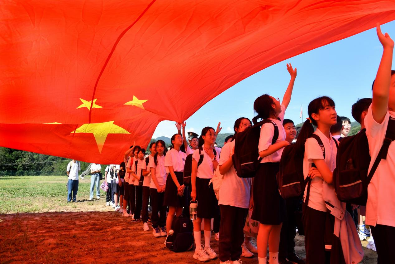 国防教育主题活动“轻抚国旗,我与国旗心连心”巨幅国旗展示