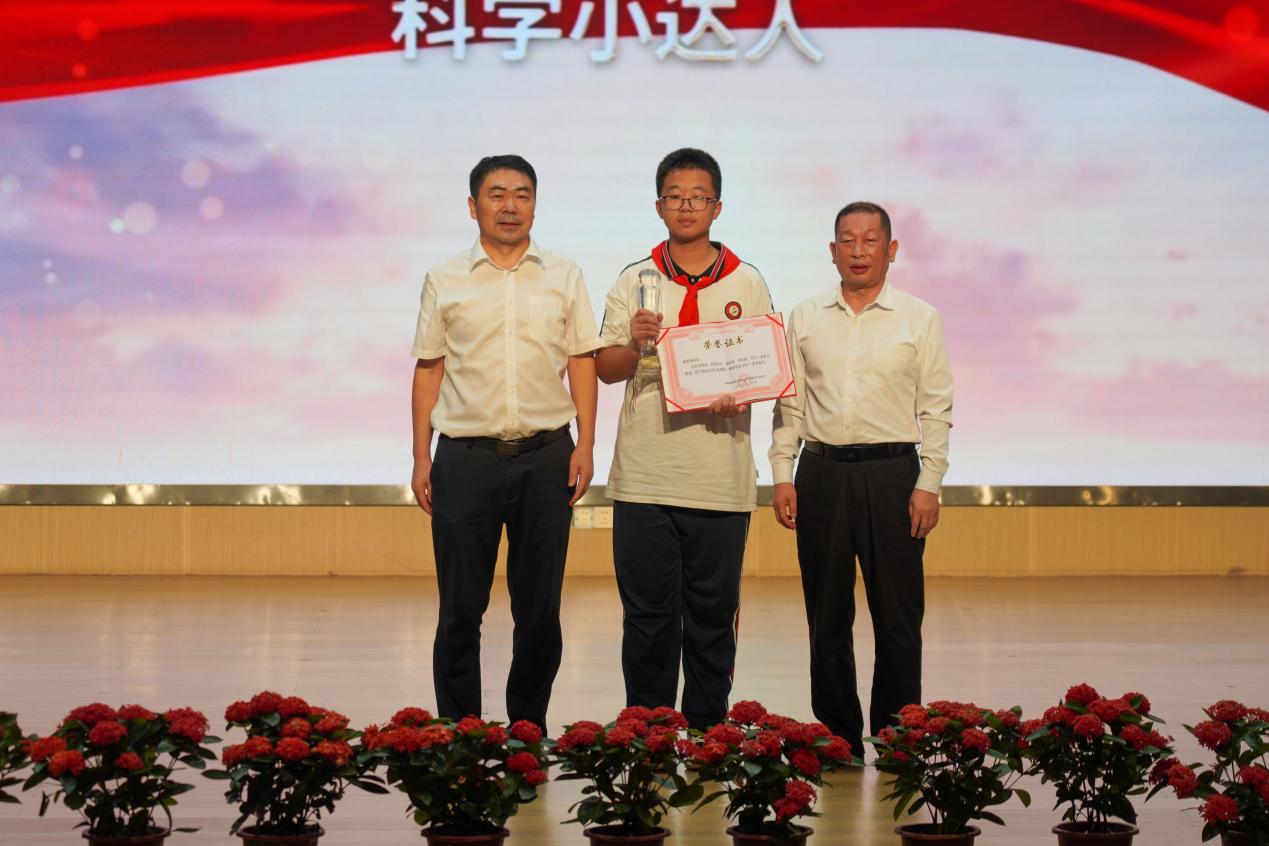 本次活动为2023年十堰市“新时代好少年”提名者、2023年十堰市“新时代好少年”和2022年湖北省“新时代好少年”颁奖,共28名学生受到表彰。颁奖大会上,汉江实验学校党支部书记、董事长陈伟、总校长朱仕竹代表大会为六年级学生张高铭、八年级学生张沥文同学颁发了荣誉证书。