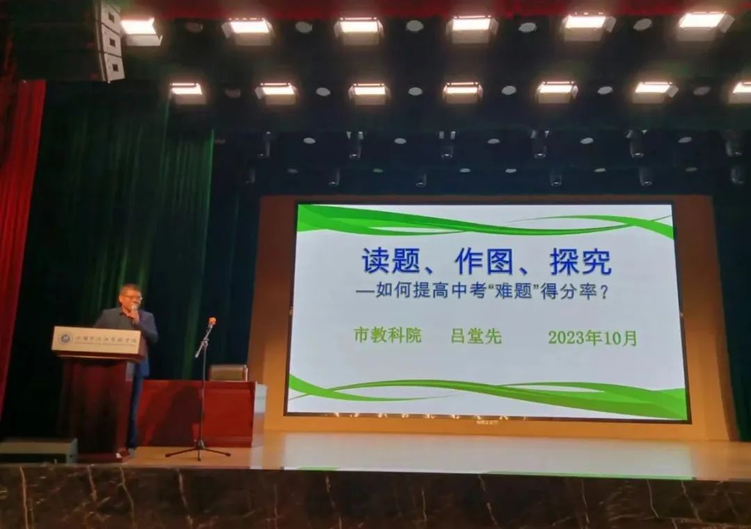 报告后,区县教研室教研员、部分学校教师作了经验分享,市教科院吕堂先主任作了《读题、作图、探究——如何提高中考“难题”得分率?》经验分享和中考备考指导。