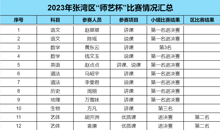 以赛促研,常赛常长。学期说课标说教材、研题命题、三笔字等基本功大赛;学年音体美教师专项技能、专任教师教育叙事、教育教学论文、教学设计、微课、精品课等教学技能大赛;以示范课、入门课、汇报课、验收课、研究课、擂台课等多种方式开展常态化全员赛课;鼓励和指导教师参加区级及以上“师艺杯”、精品课、好课堂等各类比赛,推动高效课堂建设,助推教师发展,让教师在发展中有职业荣誉感,热心从教。