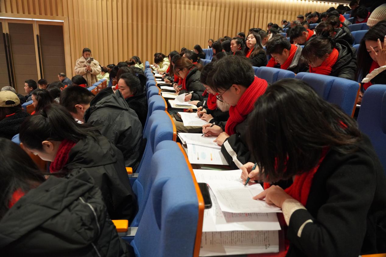 1月17日上午,张湾区教育2023年度教育目标考核汉江实验学校民主测评大会在报告厅举行。区教育局副局长、第六检查领导小组组长吴晋、校外培训监管股负责人胡绍峰、第四督学区督学胡延明、局办干部王侦、校外培训监管股干部万俊,学校党支部书记陈伟、总校长朱仕竹出席,学校教职工315人参加。