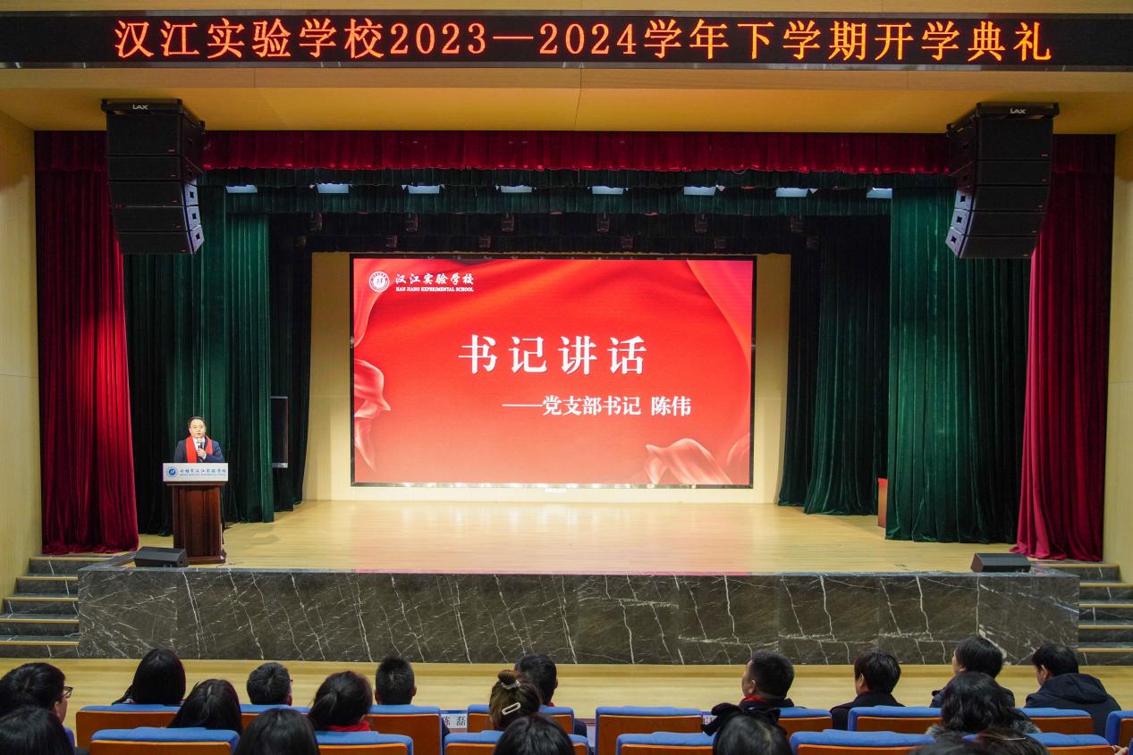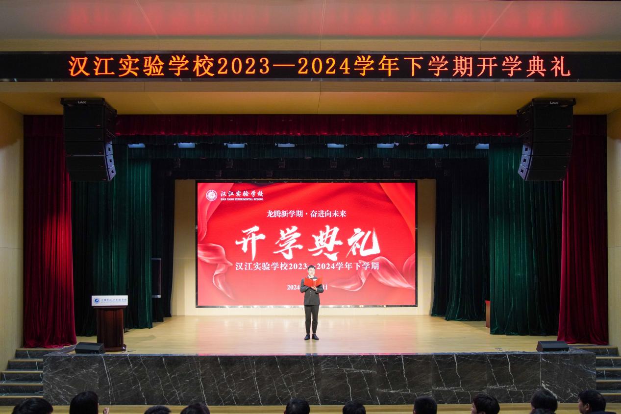 国旗飘扬,国歌嘹亮。2月27日上午,汉江实验学校在报告厅隆重举行2023-2024学年下学期开学典礼。党支部书记陈伟、校长朱仕竹等校领导出席,300余师生代表参加。本次活动以现场直播的形式,组织学生和家长在线上观看。