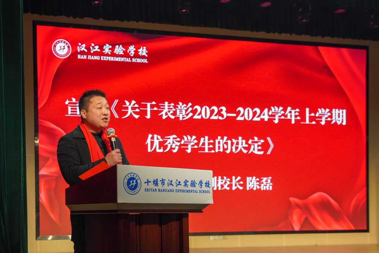 按照会议议程,副校长陈磊宣读了学校对优秀学生和优秀班集体的表彰决定。党支部书记陈伟、校长朱仕竹上台为优秀颁奖,并鼓励优秀学生和班集体再接再厉,再创佳绩。激励同学们向榜样看齐。