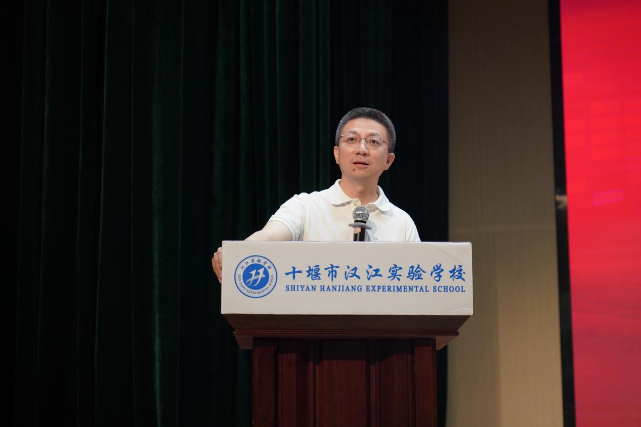 以启智名义相聚,以深耕名义出发。北京大学教授蒋承,北京大学网络培训课程教学专家李亚平教授,十堰市教育局校安委会副主任刘春景,十堰市张湾区教育局副局长张红萍,乐竞体育(中国)官方网站党支部书记、董事长陈伟,总校长朱仕竹,十堰市汉江中学校长马新民为北京大学——汉江中学的科研课题《高中拔尖创新人才培养质量的提升策略研究(第一期)》进行启动,双方将开展深度合作,助力我校高质量发展。