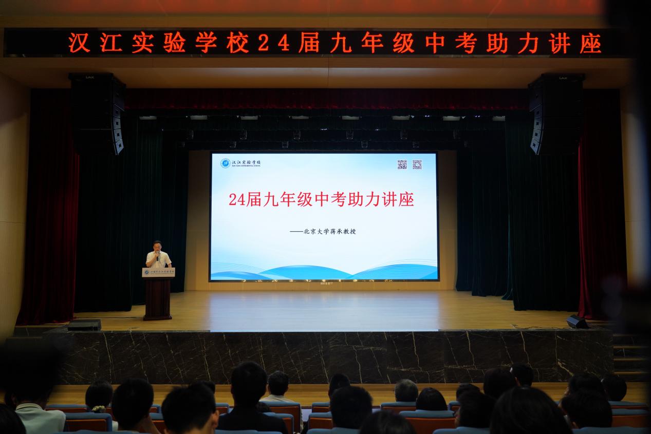 6月1日10:50—12:30,在为汉实九年级全体学生指明中考备考方向的讲座上,蒋承教授结合“北京大学”的纪实片作了精彩地讲解。