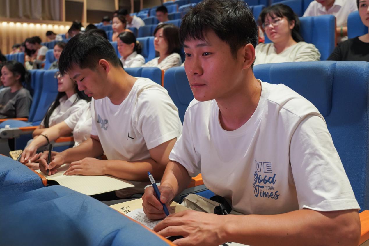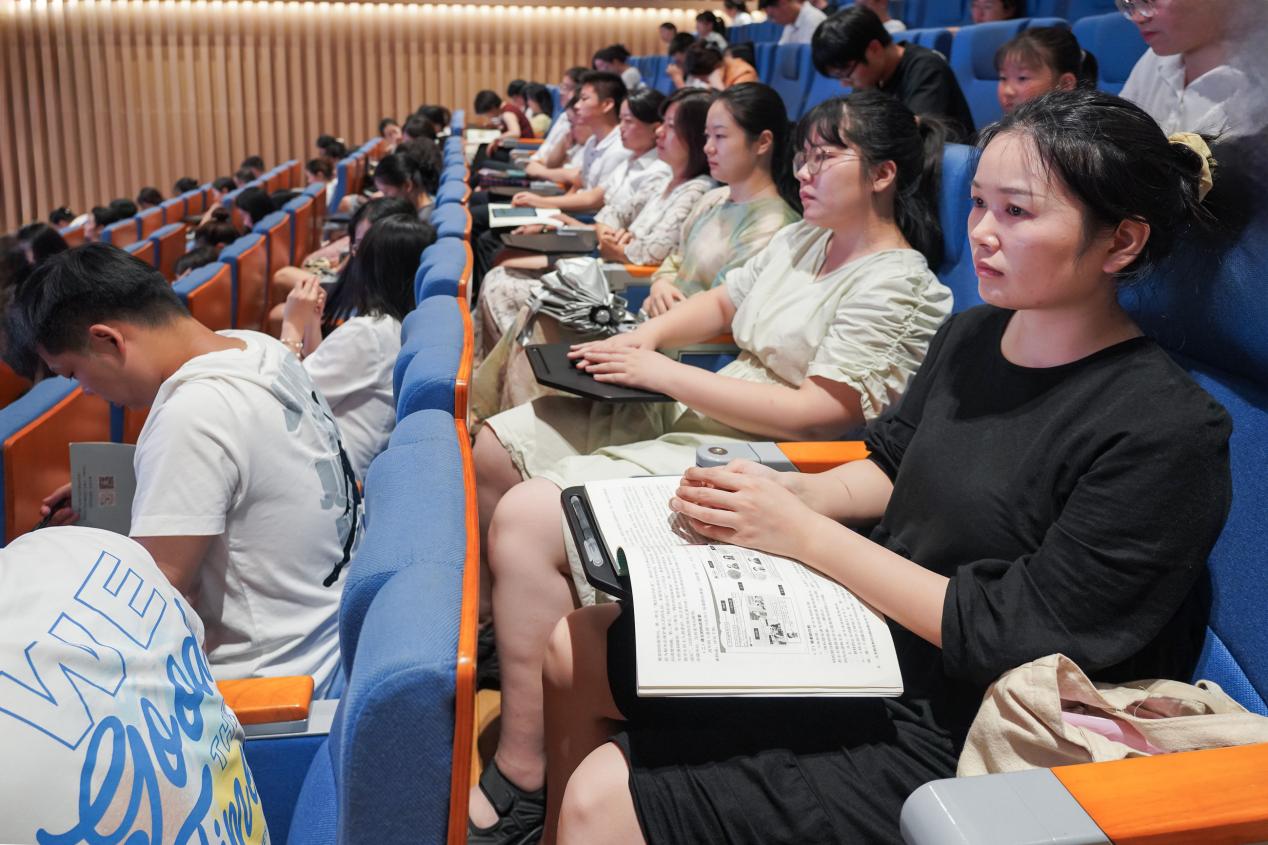本次培训特邀了语文特级教师、汉江中学教学总监姚发清 为教师们打造了一场知识盛宴。姚老师以“教育是一场行善之旅”为主题,用通俗易懂的实例,向各位教师们解读了青少年心理问题高发的原因,从而引导教师们要学会与学生共情,学会划分“责、权、利”的边界,学会与孩子谈判,学会用爱感化。善于发现学生身上的“亮点”,树立思想格局,培养人格智慧,实现“通识”“通关”“通才”,做一个懂学生的好老师。