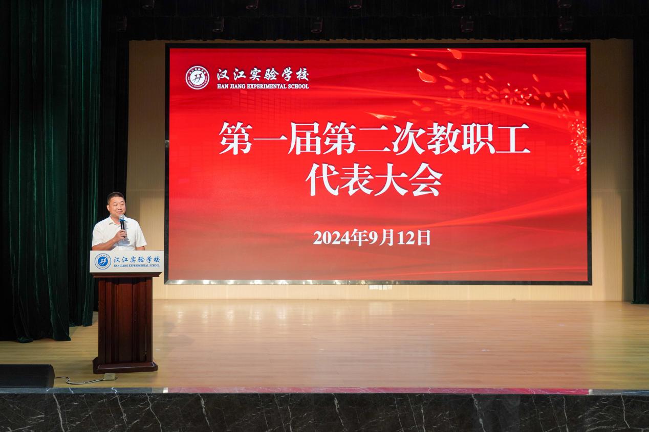 国歌嘹亮,勤志引航。9月12日下午,汉江实验学校召开第一届第二次教职工代表大会,张湾区民办教育工会联合会主席、张湾区教育局后勤股股长翁小军出席会议,学校领导、工会委员、各部门教职工代表参加。本次教代会由汉江实验学校校长陈磊主持,全校76名教职工代表共同为学校的发展献计献策。