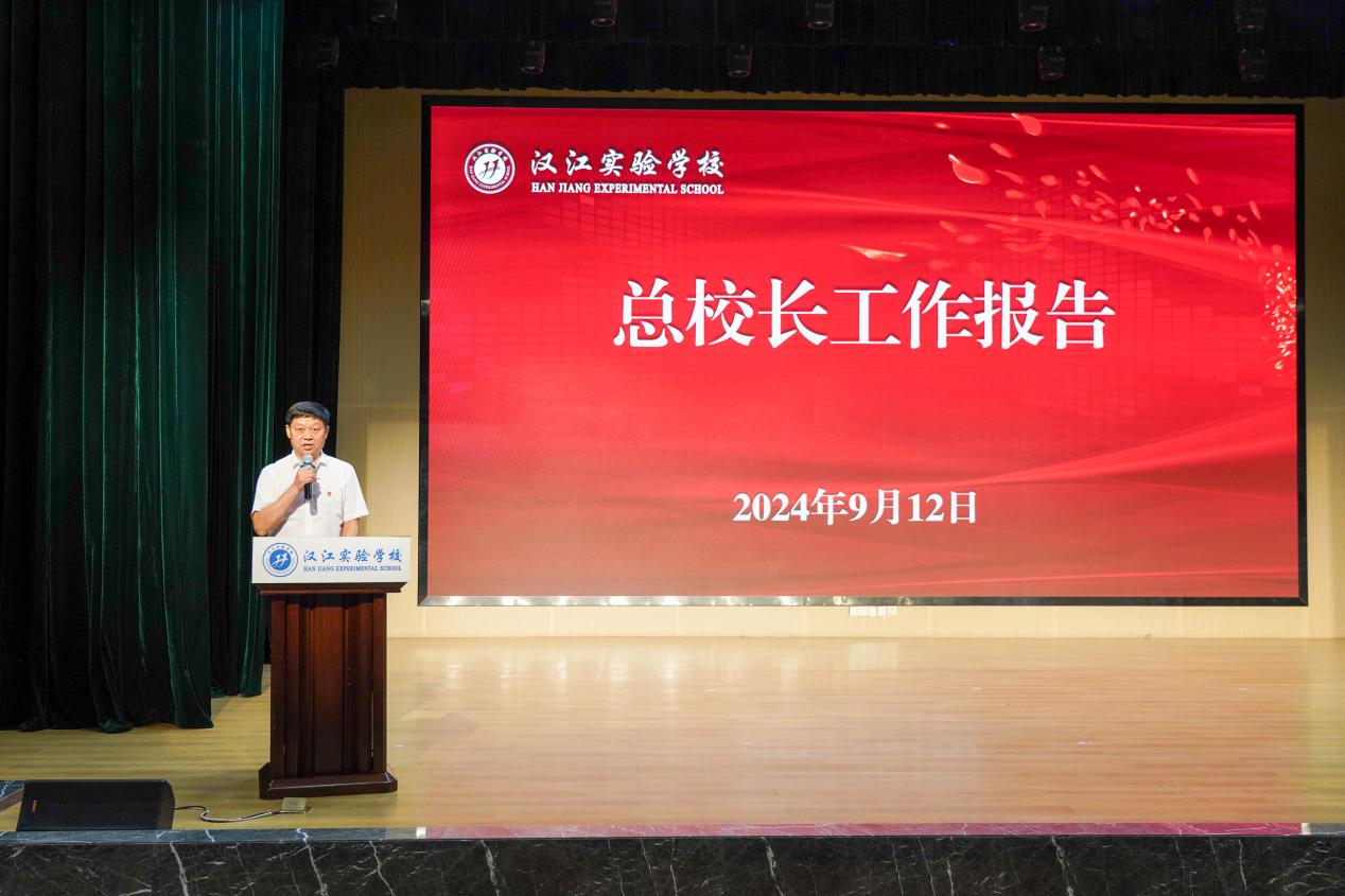 总校长朱仕竹作教代会工作报告。他回顾了本学年的重点工作,并结合学校四年来的辉煌成果,对未来作出展望。民办教育未来的发展方向是“规范、优质”,广大教职工要抓住机遇,勤勤恳恳,兢兢业业,坦坦荡荡,走出汉江教育的高质量发展之路。