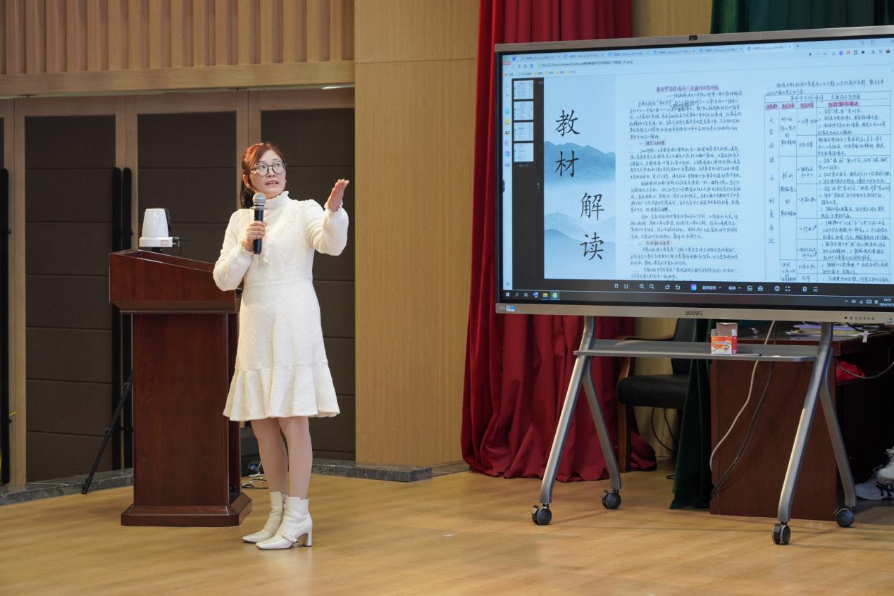 教材解读中,我校语文老师严娟以“岁月革命抒情怀,点面结合写场面”为主题,对语文六年级上册第二单元的教材内容进行了详细解读。她立足新课标和学情,分享了她在教学方面的独到见解,展现出了极高的专业水平和个人素养。
