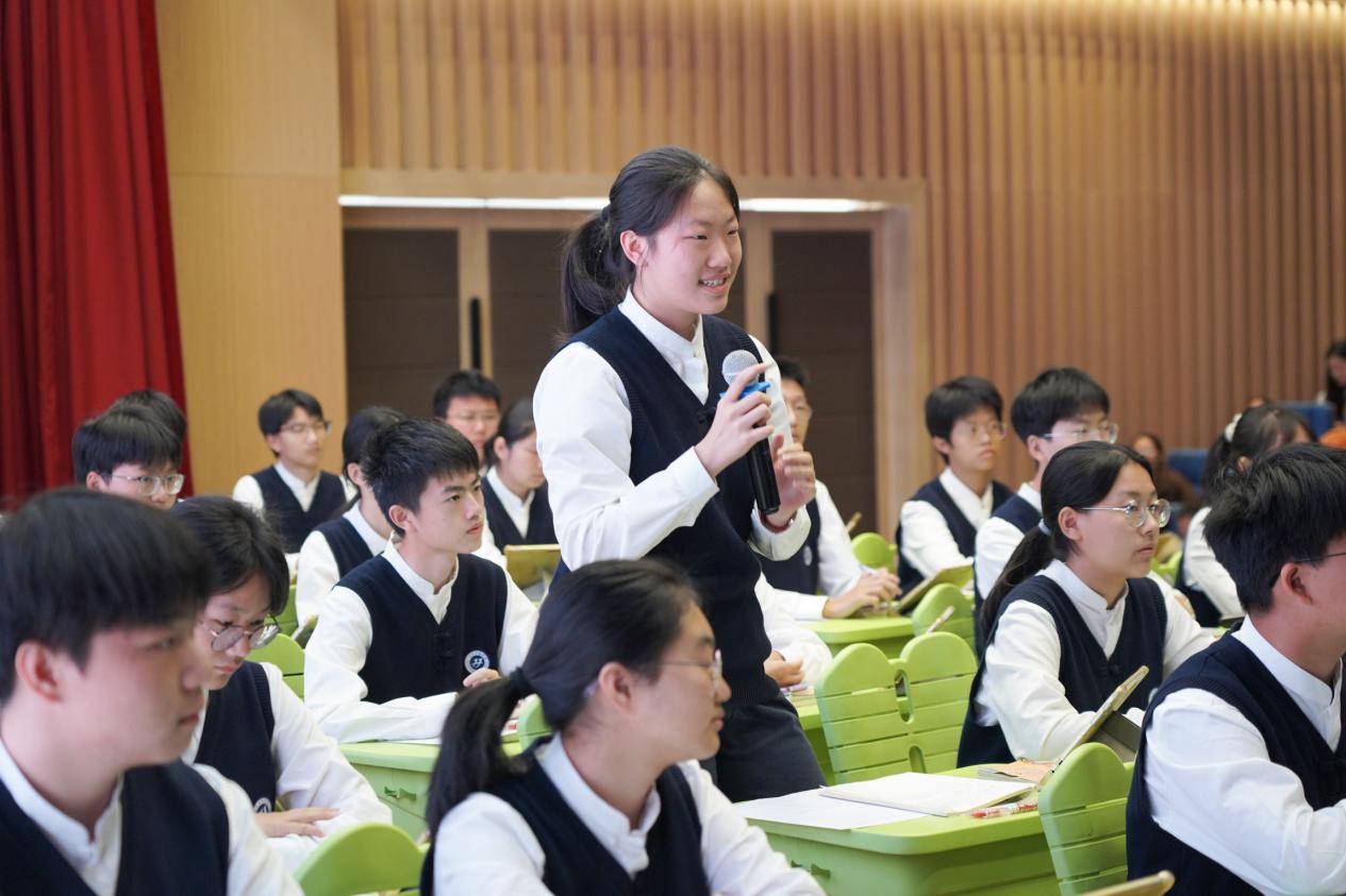 市教科院副院长丁海燕对新课标的新旧变化进行详细解读,尤其是素养立意内涵方面的阐述,并提出要依据新课标下的中考备考,把生活实践、跨学科的实际情景相结合,统一思想、开阔视野,思考新中考底线逻辑,准确把握备考新方向。