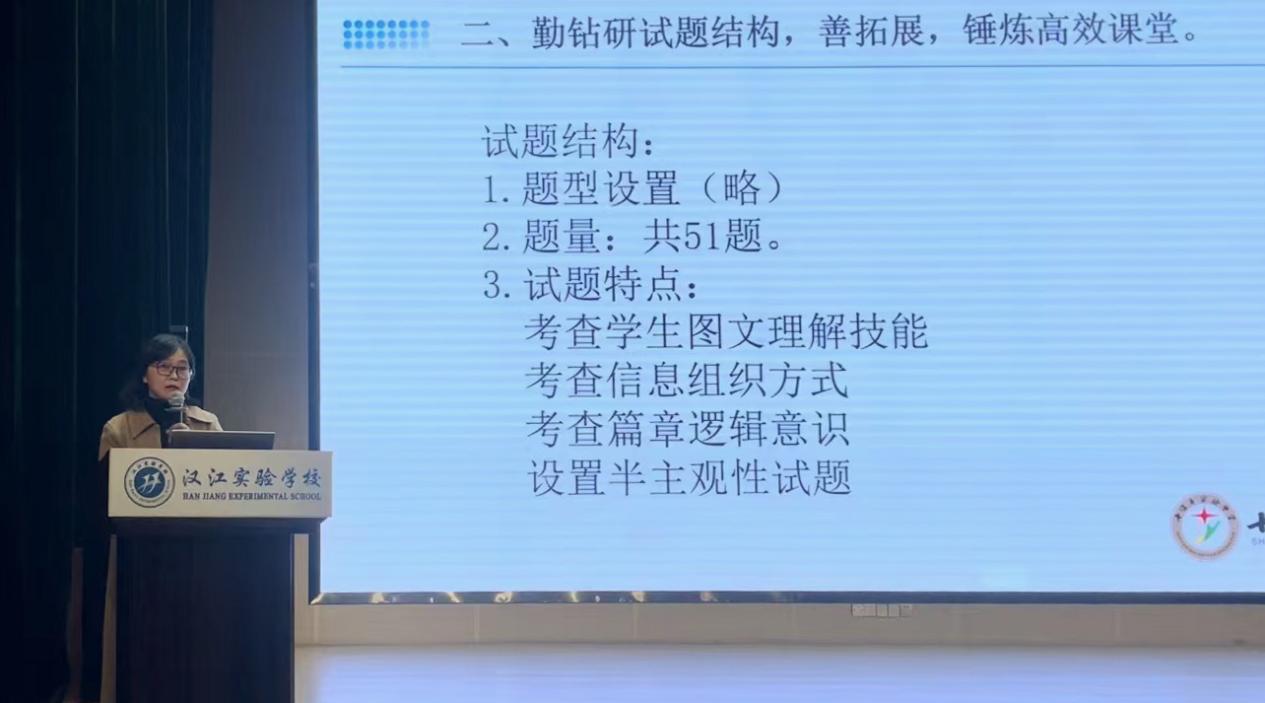 24日,汉江实验学校校长陈磊出席活动并致词。他对各位领导和专家的到来表示热烈欢迎,并简要介绍了学校的基本情况及近年来在英语教学方面取得的成绩。他指出,在新课标颁布推进实施下,在中考命题全省统一的新形势下,要打造高效课堂,准确把脉教学的效度和深度,落实新课标的精神实质,把控2025年中考复习备考的方向。