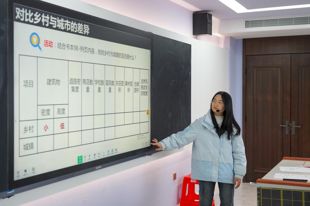 地理学科竞赛中,我校付心怡老师以地理七年级上册《城镇与乡村》为授课课题,巧妙地将理论知识与实际生活相结合,通过阐述家乡城市的变化,引导学生关注身边的地理现象,培养他们的地理思维能力。