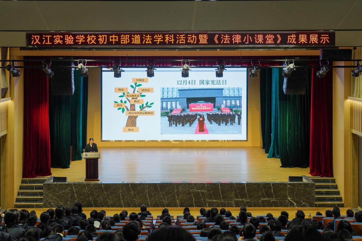 12月4日是第十一个国家宪法日,为增强未成年人法治意识,营造良好的法治校园成长环境,我校于12月10日下午,举办初中道法学科活动暨《法律小课堂》成果展。校长陈磊、执行校长王国聪、副校长杨志等领导出席,八年级全体学生参加。