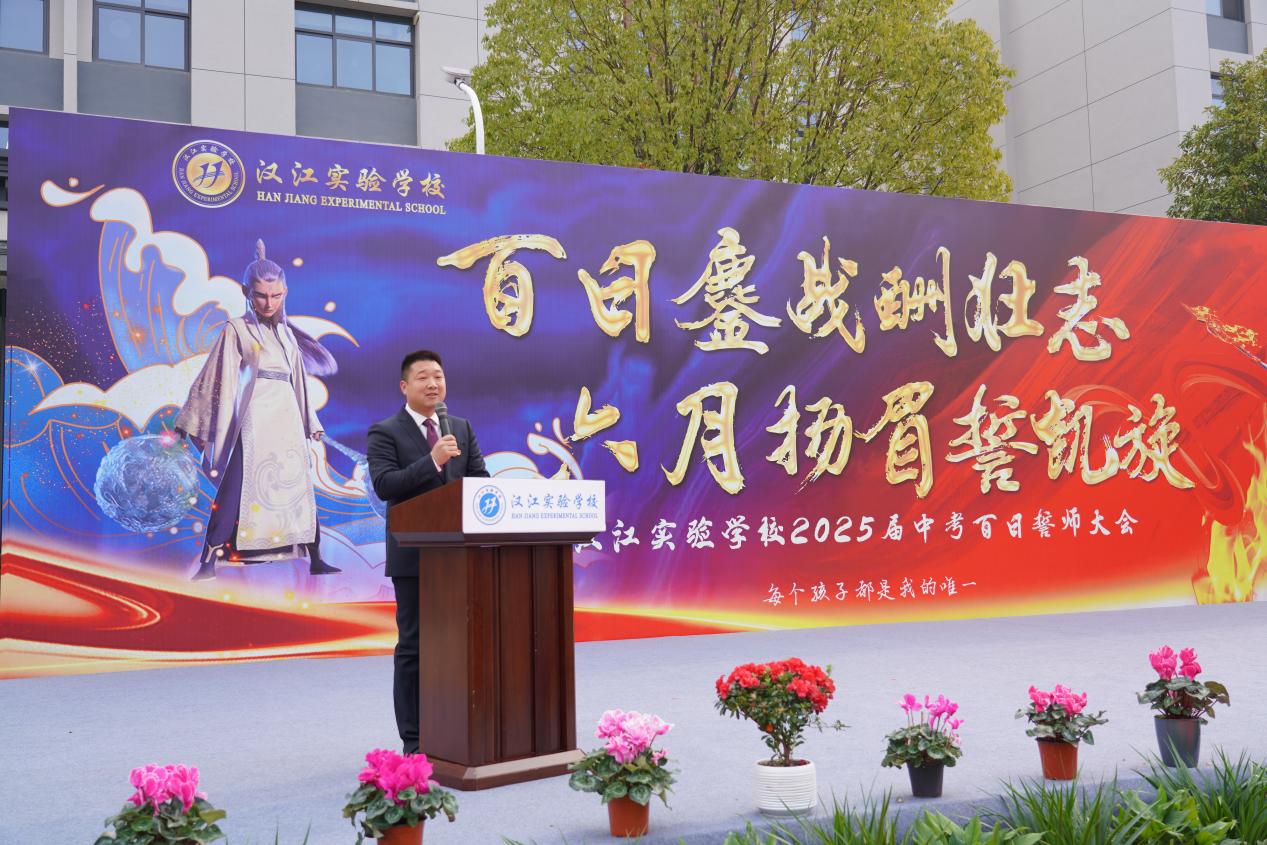汉江教育党总支书记陈伟郑重宣布:“汉江实验学校2025届中考百日奋战出征!”