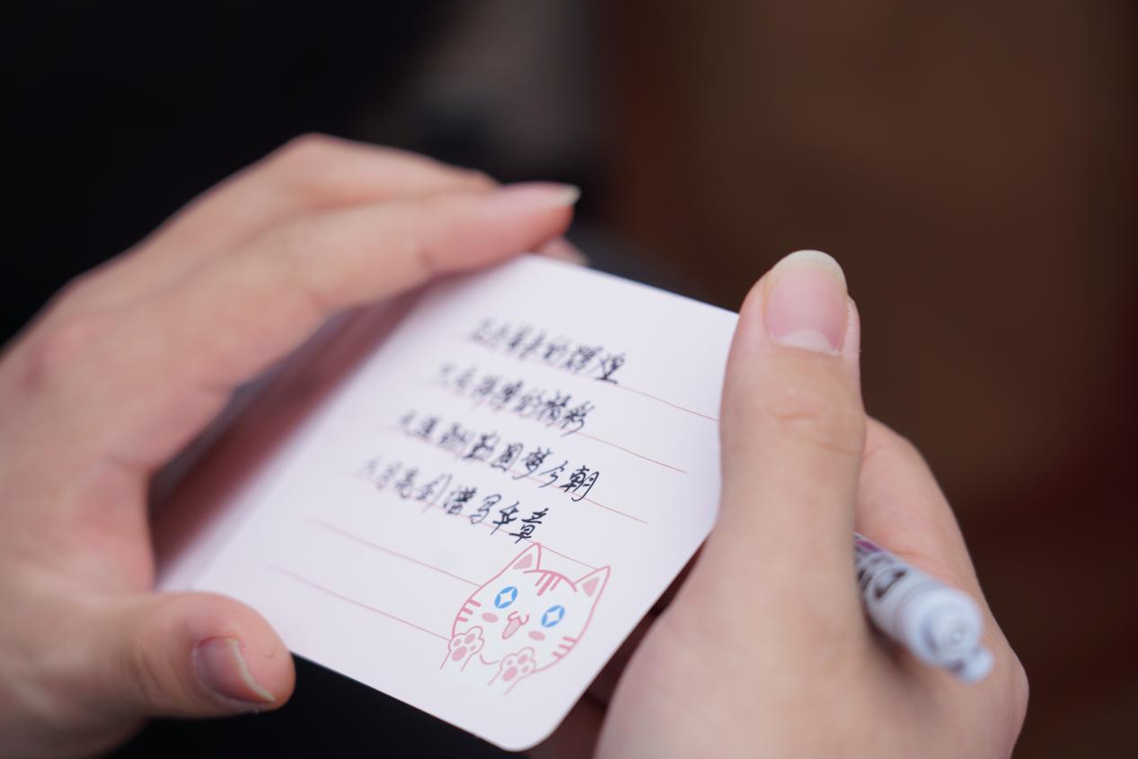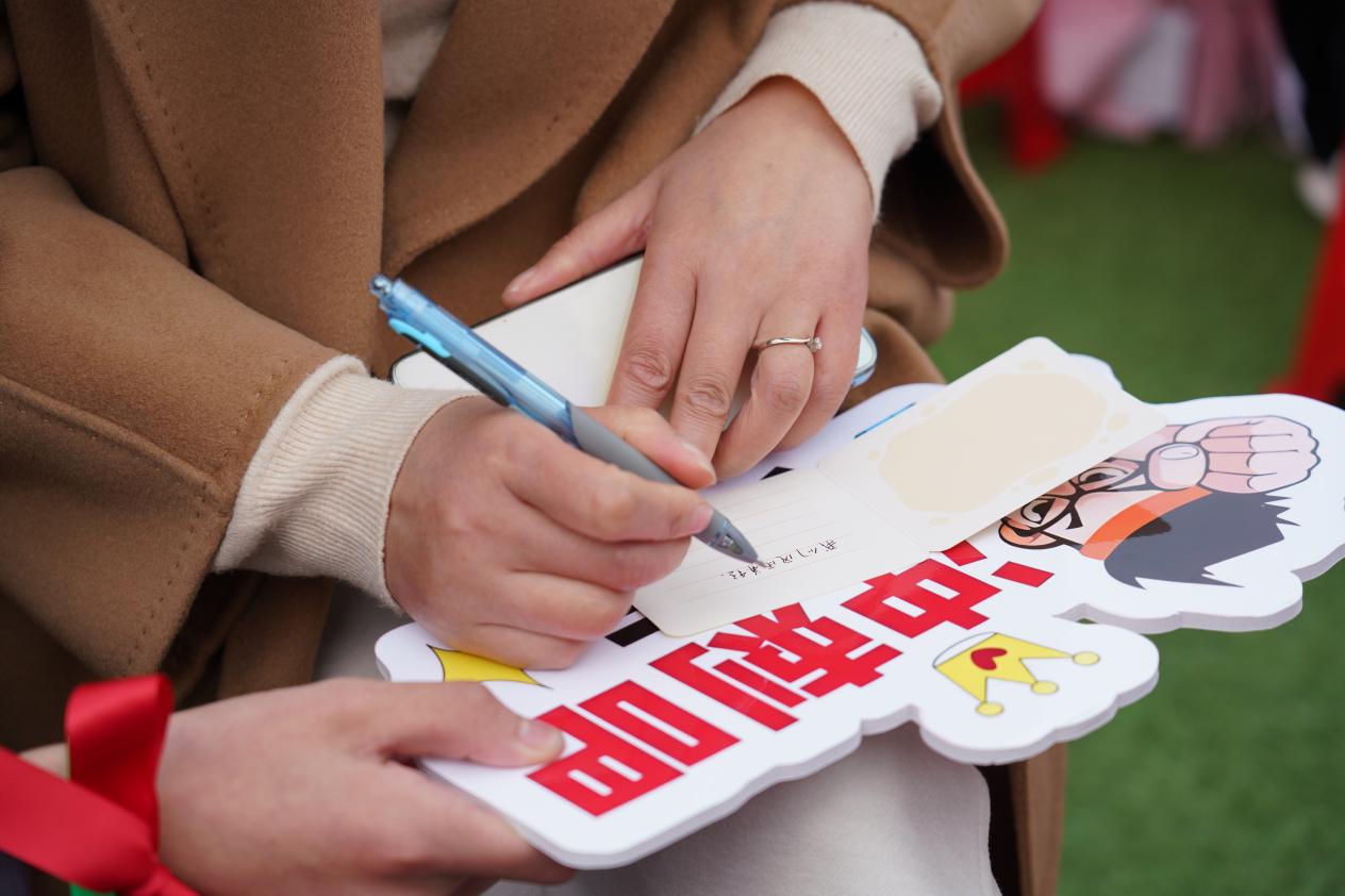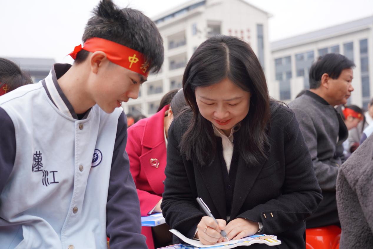 学生执笔书写中考目标,并签署姓名,笔尖落下的既是承诺,亦是青春的见证,寄托着梦想远航。
