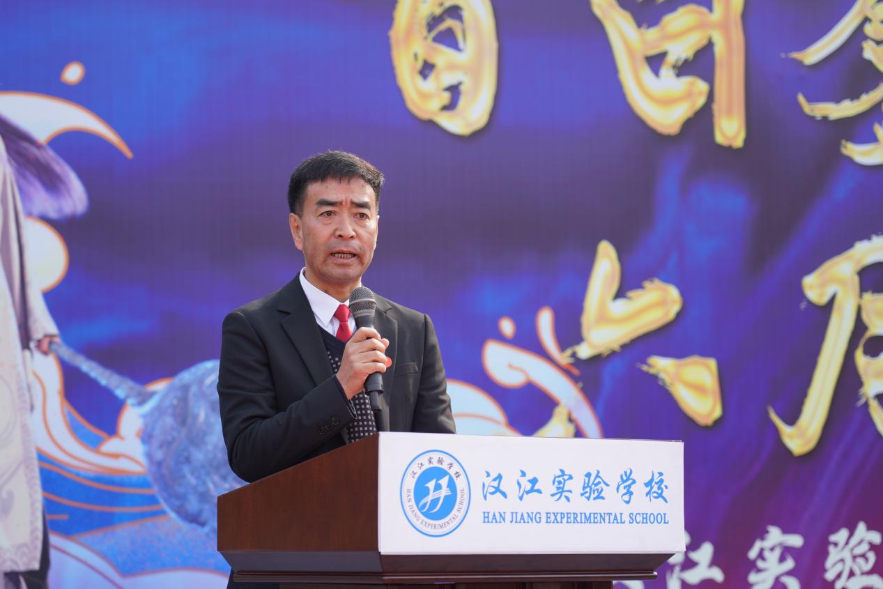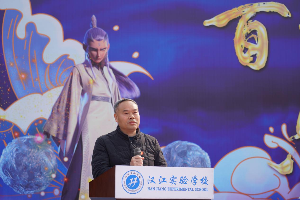 汉江实验学校党支部书记、校长陈磊在致辞中擘画蓝图,鼓励汉实学子在最后的百日里全力以赴,再启新程,以哪吒之勇、敖丙之毅,在中考战场上挥洒汗水,为梦想而战,为青春喝彩,旗开得胜,马到成功!