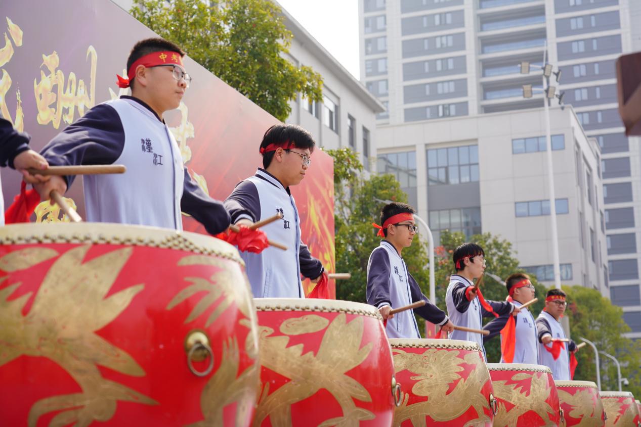 踏征程,启华章。战鼓雷鸣,九年级的学生们手持励志手举牌,迈着自信的步伐通过“成功门”,寓意在中考的征程上勇毅前行,题名金榜!