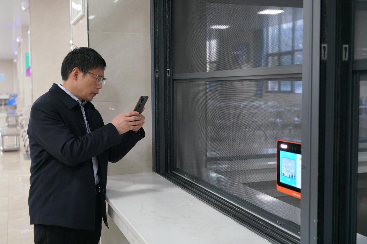 调研组先后参观了食堂的智能刷卡区、食材管理系统展示区,现场登录我校数字食堂后台,查看相关流程的操作。汉江教育行政办公室主任张旭东详细介绍了我校数字化食堂的整体架构和运行模式,展示了从食材采购、储存、加工到系统录入,财务管理,就餐反馈的全流程数字化管理情况。参观领导还向我校陪同领导咨询了学生就餐服务和食堂管理方面的其他问题。