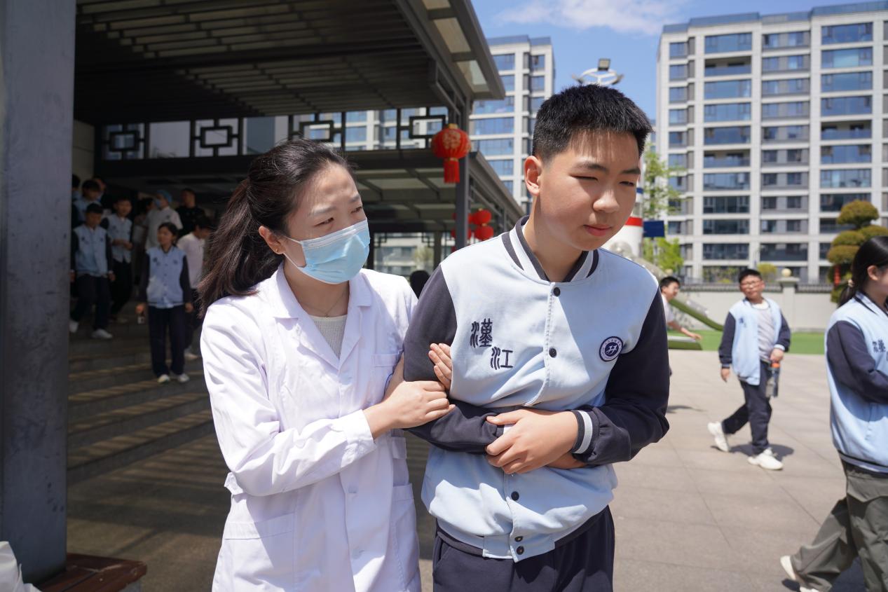 生活部主任杨丽将“疑似中毒学生”转移至安全区域