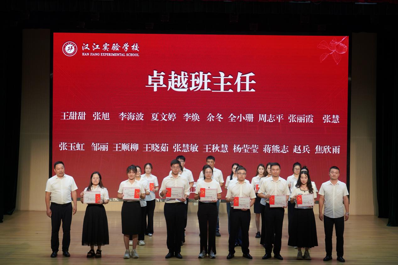 获奖集体与个人依次上台接受表彰。本年度共评选出6位“卓越干部”、20位“卓越班主任”、35位“卓越教师”。同时,还为“优秀年级组”颁发了流动红旗及证书。