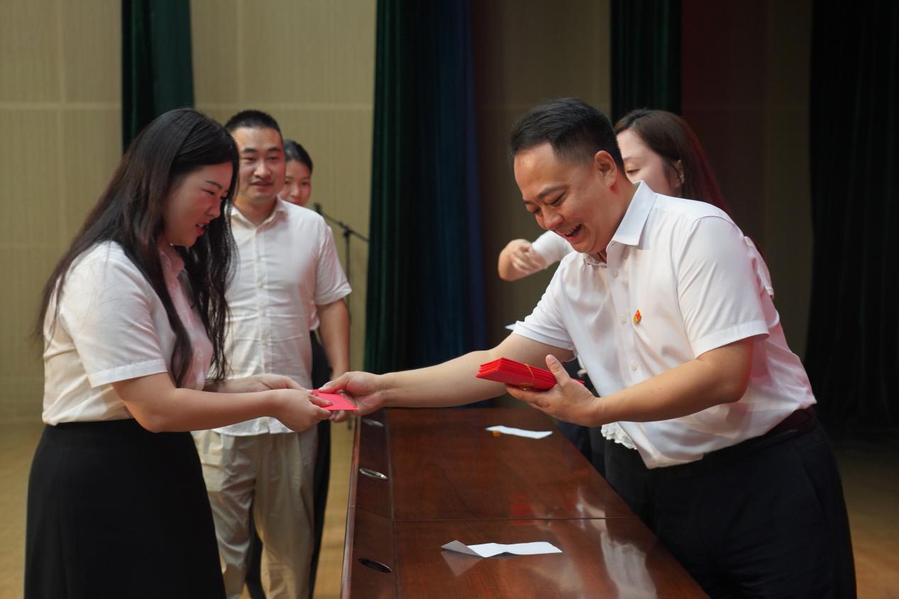 致辞结束后,汉江教育党总支书记陈伟,副书记朱仕竹,汉江实验学校党支部书记、校长陈磊为教师颁发“教学质量奖”,并送上节日祝福。