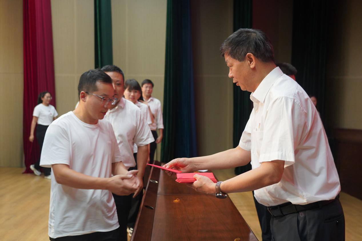汉江实验学校党支部组织委员、副校长杨志讲话,并为学校发展作出贡献的教师颁奖。杨校长对我校今年中考取得的优异成绩表示热烈祝贺。他指出,这些成绩的取得是全校师生共同努力的结果,展现了学校的办学实力和教育质量。杨校长勉励大家要再接再厉,继续保持昂扬的斗志,争创更加优异的成绩,为学校发展再立新功。