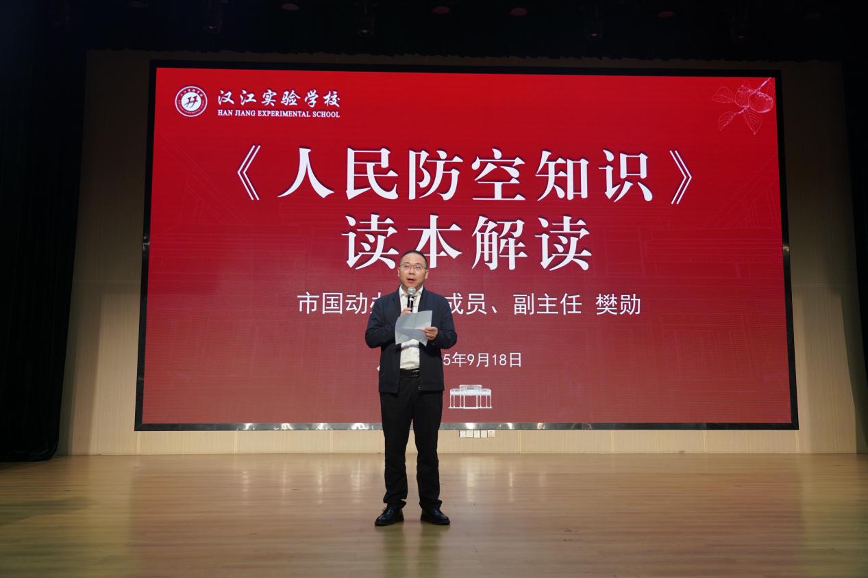 本次活动由市国防动员办公室、市教育局联合主办,汉江实验学校具体承办,通过警报试鸣、读本赠送、学生倡议和领导总结号召等多个环节,全面提升师生国防意识与应急避险能力。