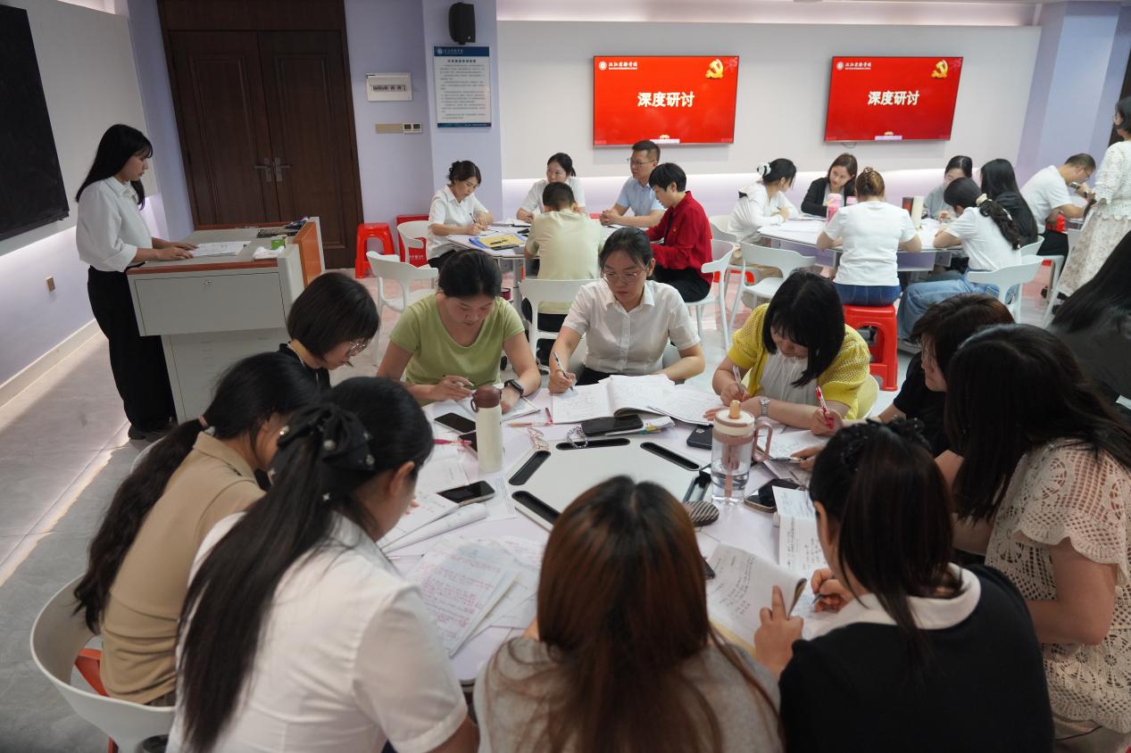 作为此次研讨会的承办单位,我校定期开展贯通式集体大教研,每周两次小教研,共同研读新课标,聚焦数学核心素养,研究数学高效课堂,深入分析学情,分享教学经验,探讨教学方式。我校深入推进教育教学改革,聚力提升育人成效。通过开展大教研活动,调动教师主观能动性,发挥集体智慧,探究各种课型教学基本模式。在复习课上,数学教师结合生活真实情境,提出关联复习主题,引导学生自主梳理,构建知识框架,把学法指导渗透在不同多样学习活动中,激发主动学习、主动探究、主动思考,设计有梯度的分层练习,查漏补缺,发展能力,积淀学生数学素养,让每一个孩子都有收获,让不同的孩子得到不同的发展。