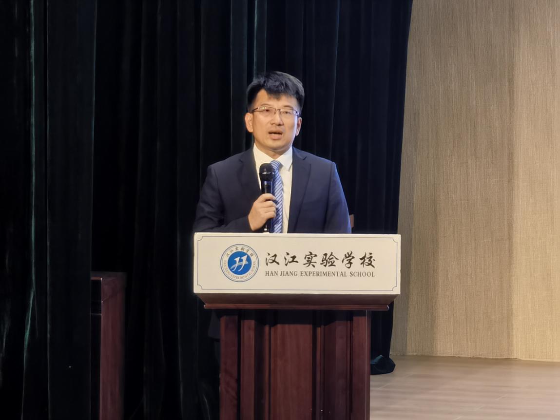 《项目》专家组成员、联络专员、汉江实验学校副校长张旭东对项目进行了全面回顾。2019年,董事长何蕾多次亲临北京师范大学进行参观与考察,促成我校与北师大签订教学质量提升项目协议。2020年7月15日,中国著名教育家、北京师范大学资深教授顾明远先生为汉江实验学校题写校名,关怀勉励我校。自2020年9月项目实施以来,北京师范大学数位专家多次莅临我校,通过随堂听课、评课磨课、专家讲座、课例讲解、作业反馈等形式,对我校教师在教学设计、学情分析、教学成长等方面进行了全面指导。教师们在《项目》中认真学习,积极交流所思所想,将所学所得融入教学工作中,教学素养和教学技能获得了极大提升。