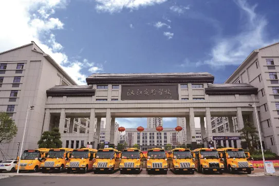 城区校车,早晚接送;郊区及县城校车,周末接送。校车安装智能监控和GPS定位系统,实时掌握行车状况;每车安排老师随车接送,确保每位学生安心上学、安全回家。