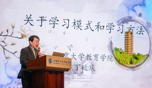 博士生导师丁延庆作《关于学习模式和学习方法》报告,指导家长协助孩子摸索适合自己的学习模式。