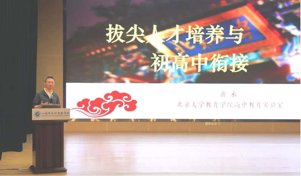 北京大学教授、博士生导师蒋承作《拔尖人才培养与初高中衔接》报告,详细介绍教育教学的探索研究思考与规划。